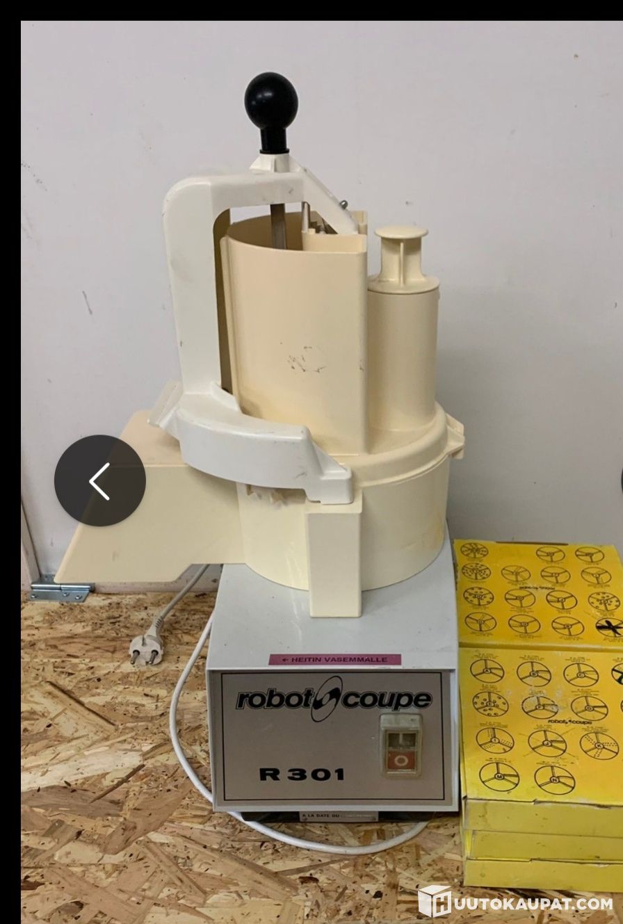 Myydään toimiva Robot coupe R 301 vihannesleikkuri. Kuvassa näkyvät terät tulee mukana. Kutterin kulhon muovikansi puuttuu.