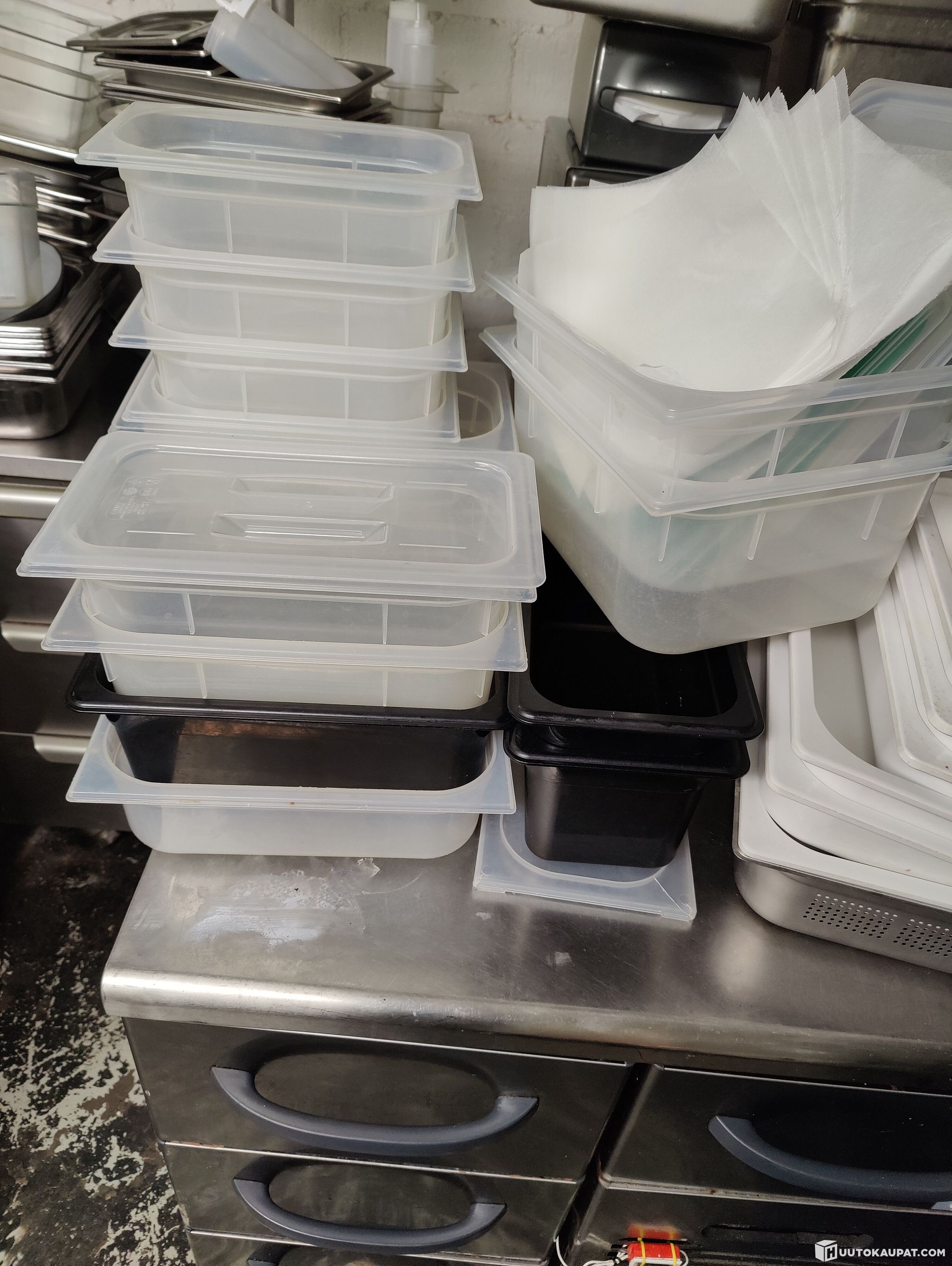 Yks kpl rst rei'itetty1/1, kolme kpl rst rei'itetty1/2 ja kuvassa näkyvät muoviset gn-astiat