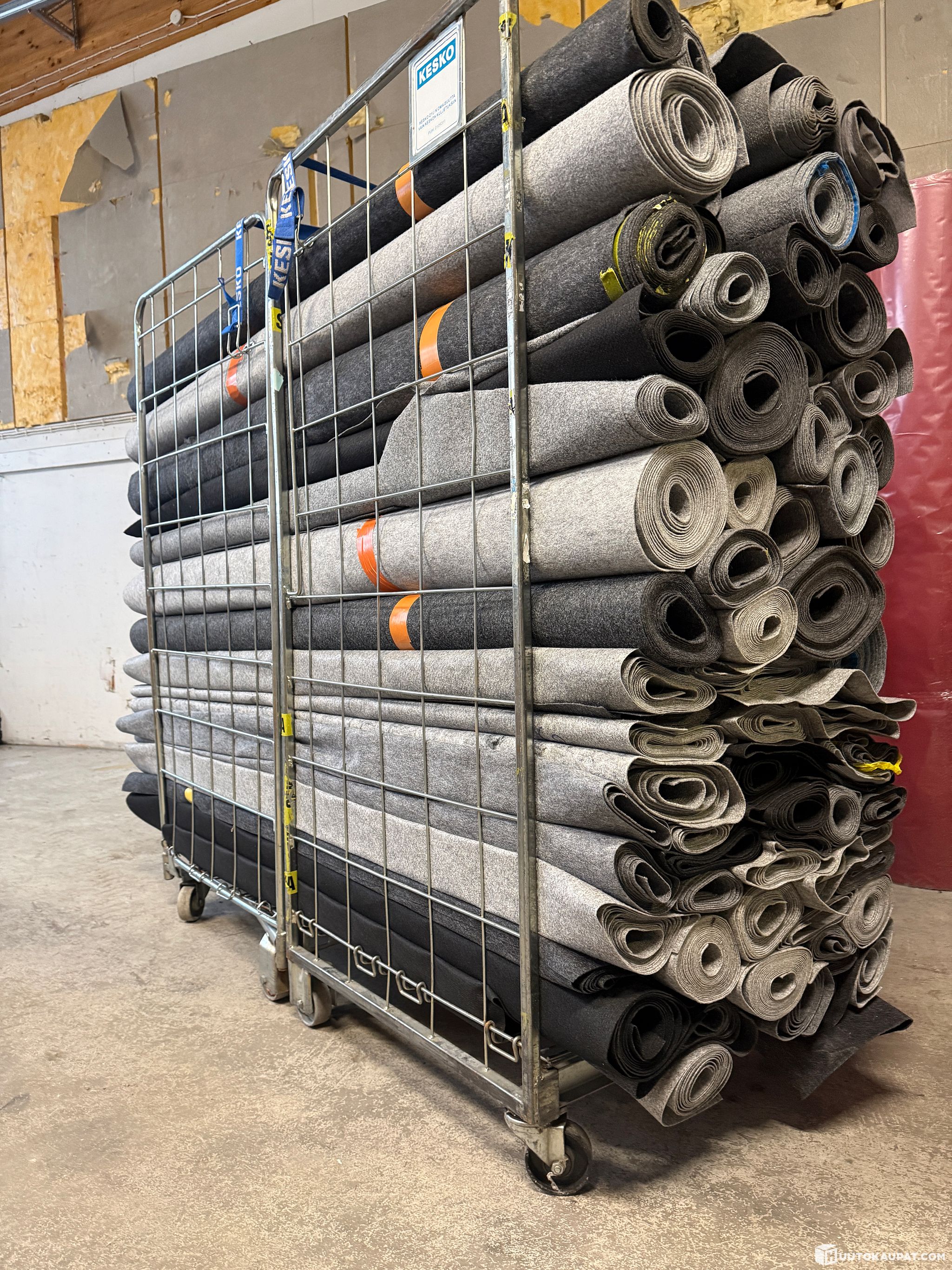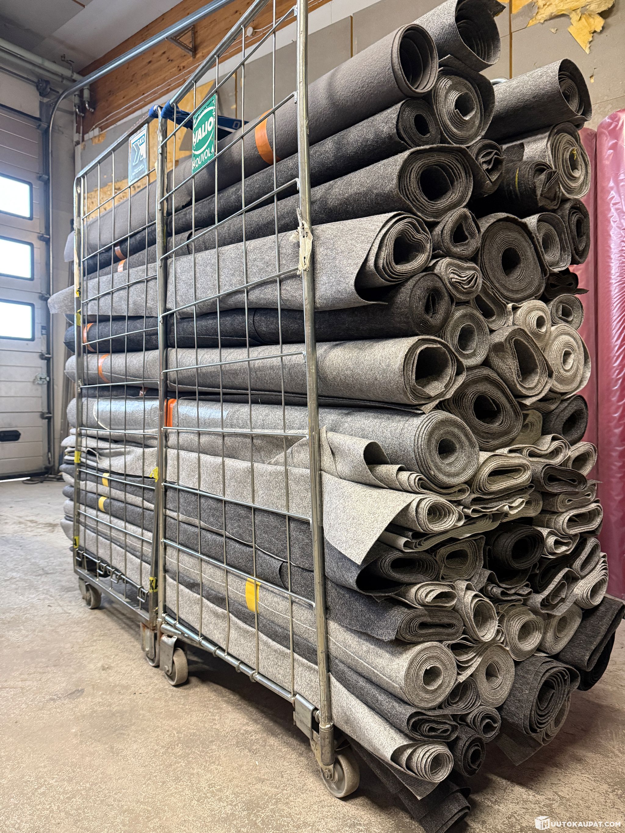 Tuplarullakollinen käytettyä suosittua harmaata messumattoa 2 metriä leveissä kaistaleissa. (kts kuva)