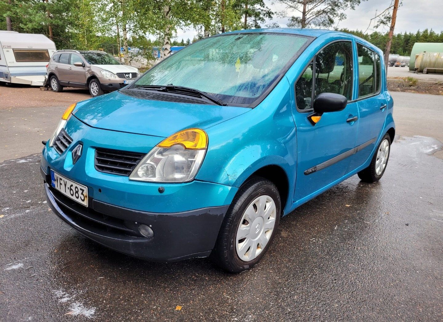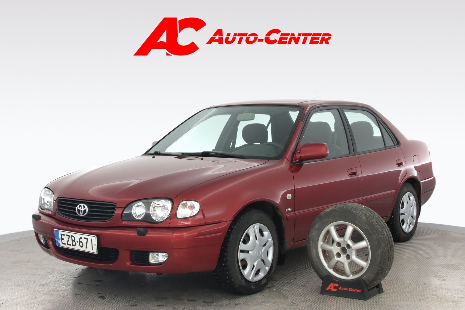 Autossa kahdet renkaat ja vanteet. Sisusta siistissä kunnossa ja tekniikka tuntuisi toimivan.