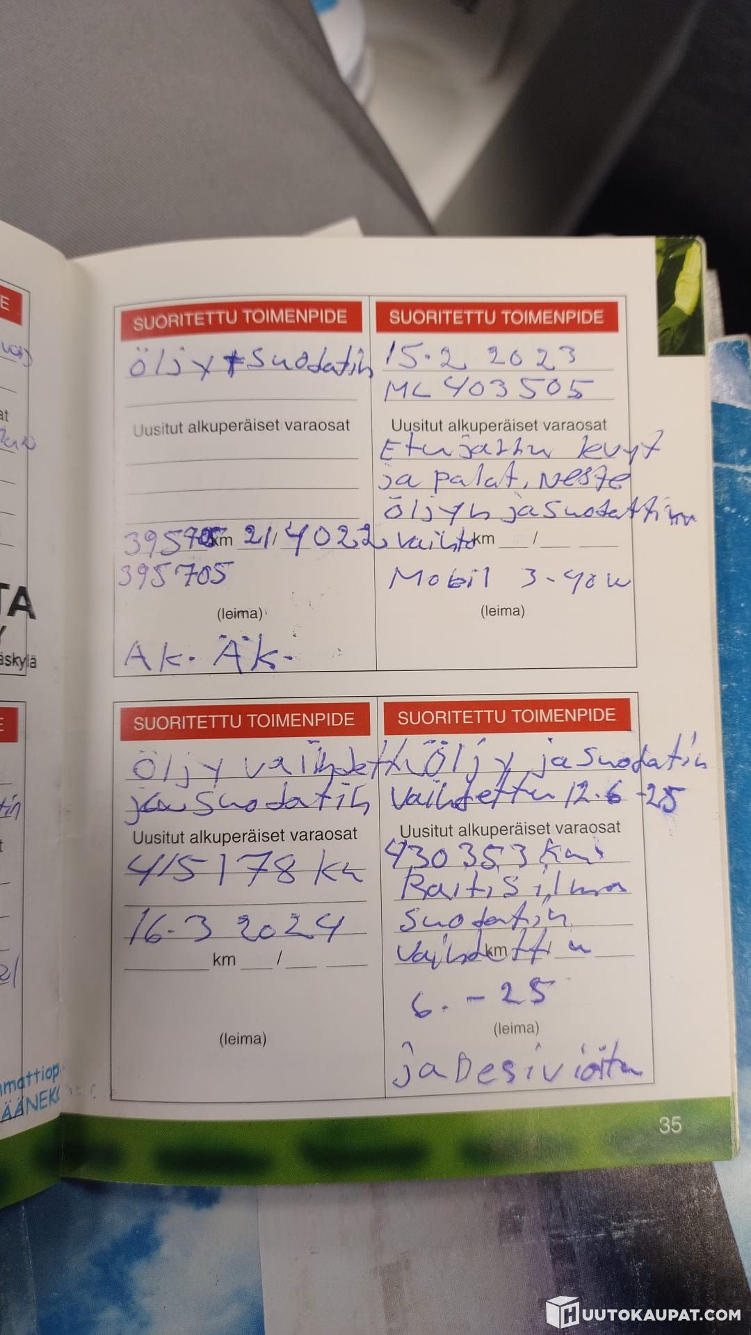 huoltokirja on hyvä!