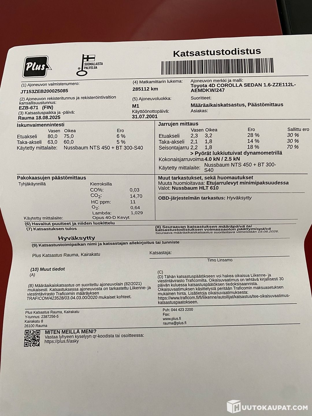 Juuri huollettu 1/2026 ja viimeisin katsastus 8/2025.