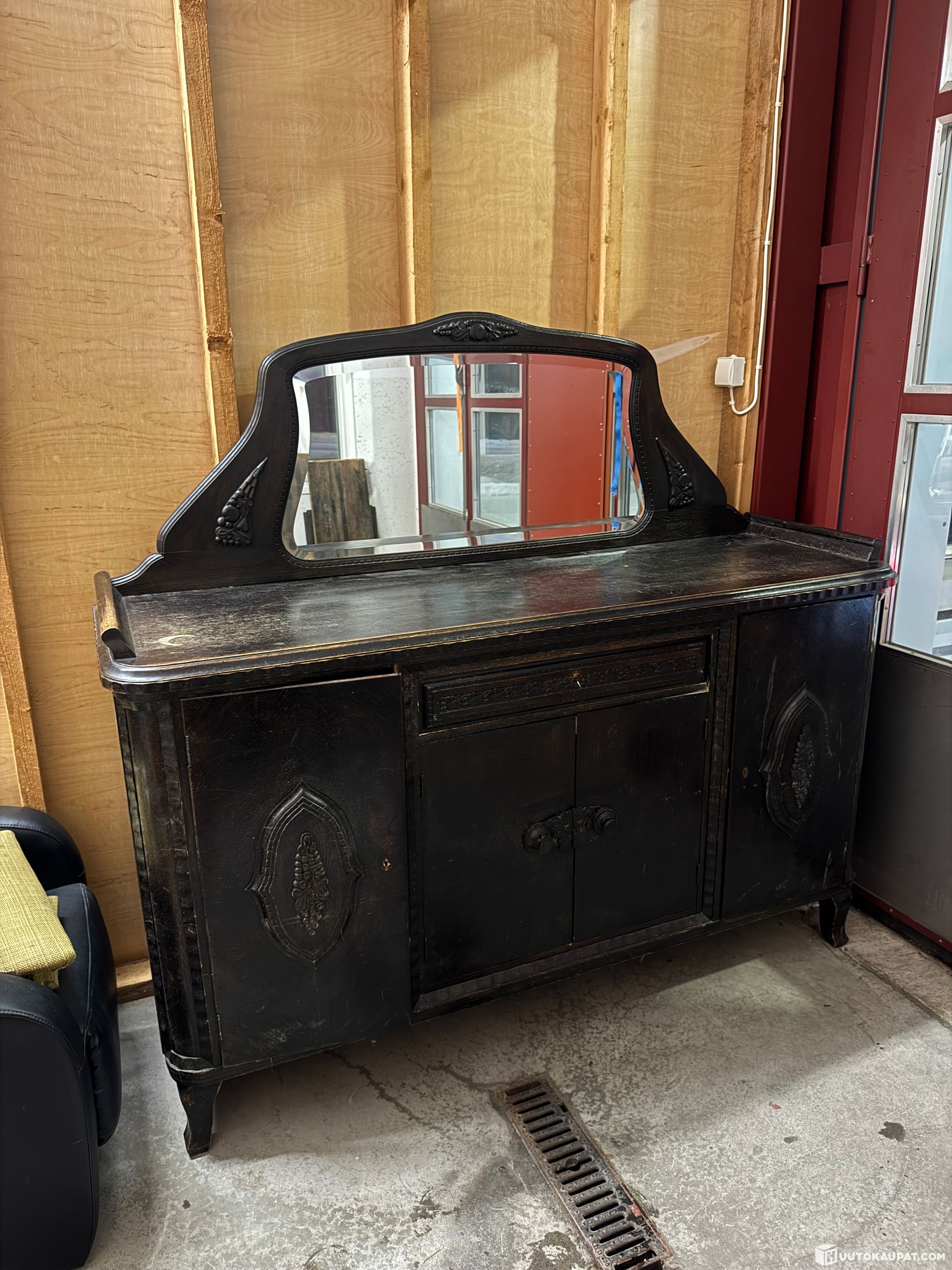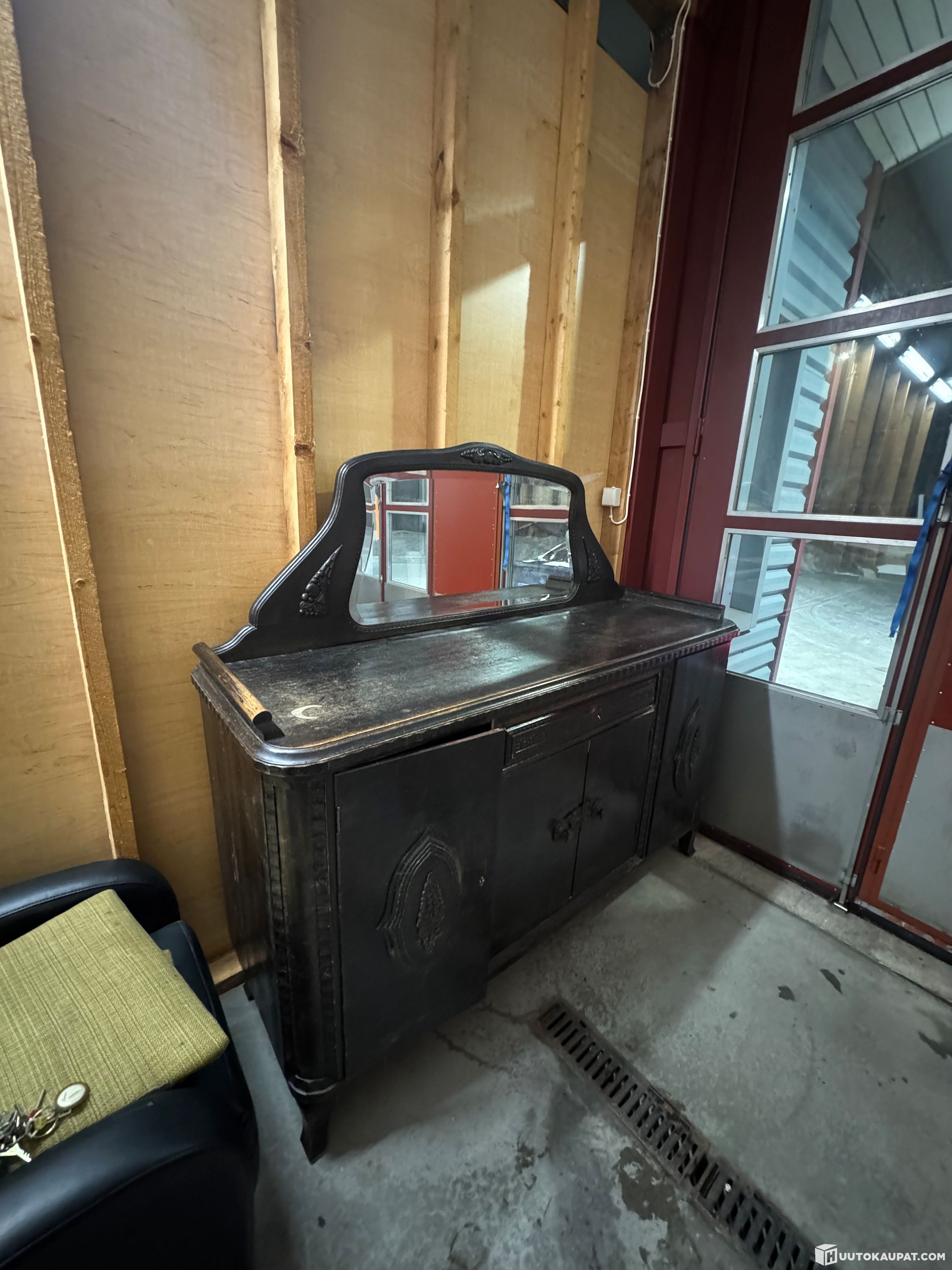 Kaunis arviolta 20-30luvun peilisenkki. Patinaa ja käytön jälkeä on. Myydään kuvien mukaisessa kunnossa. Yksi avain ylälaatikkoon. Peili ehjä ja irrotettava. Painava.