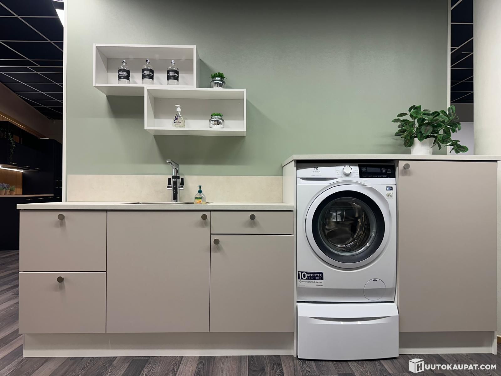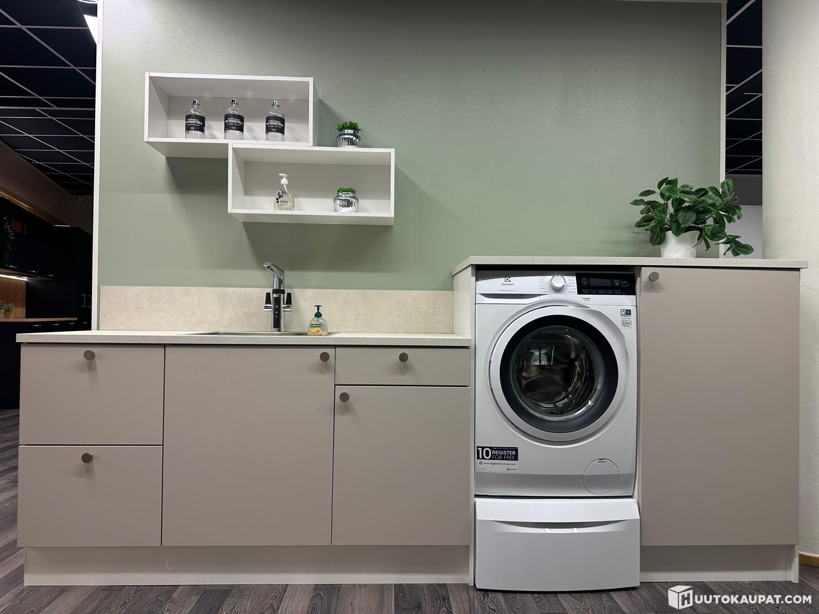 Topi-Keittiöt kodinhoitohuonekalusteryhmä Dyyni pyykinpesukoneella, altaalla ja hanalla varustettuna (malliryhmä)