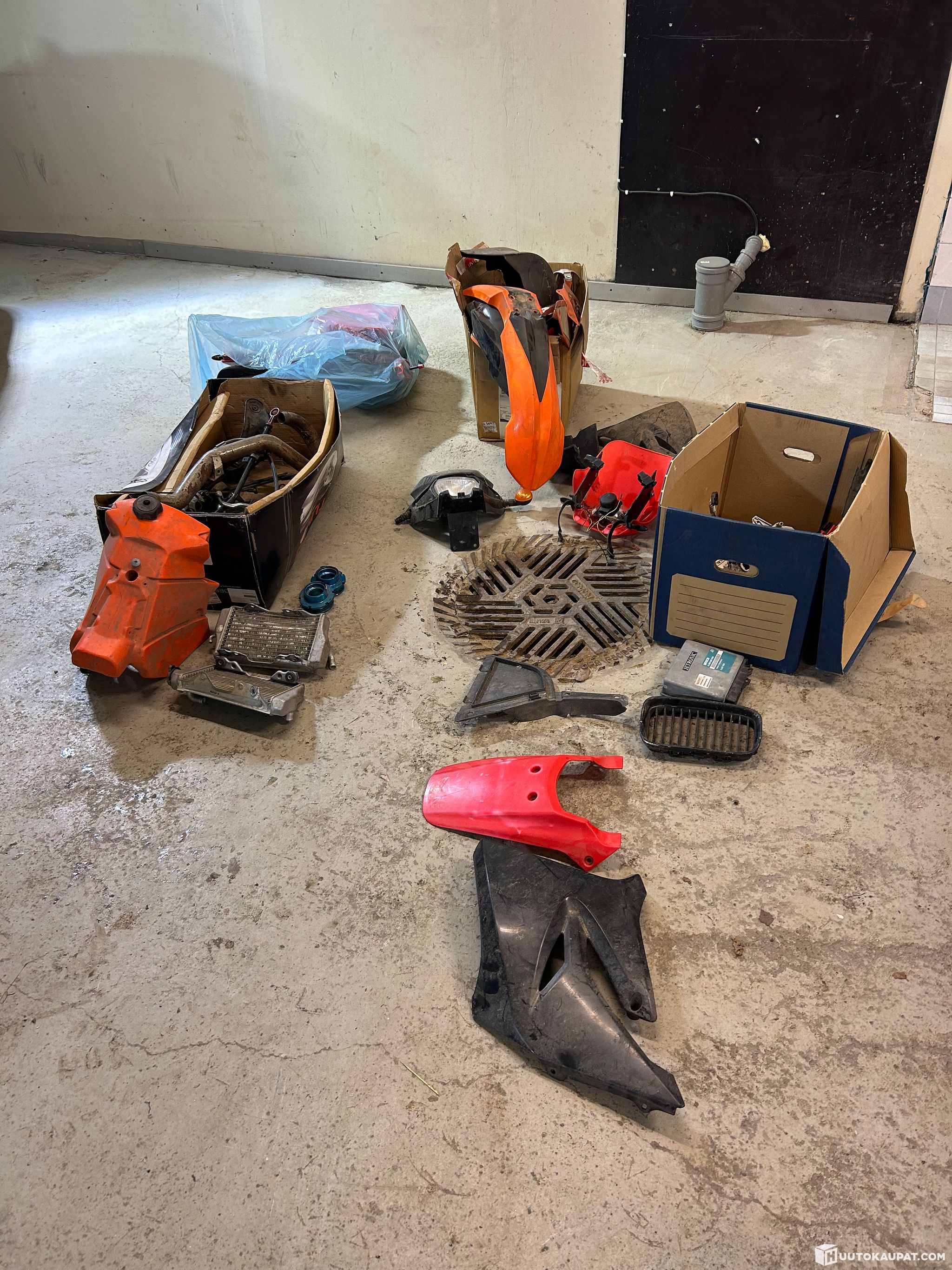 Sekalainen kasa enduropyörän/mopon osia.