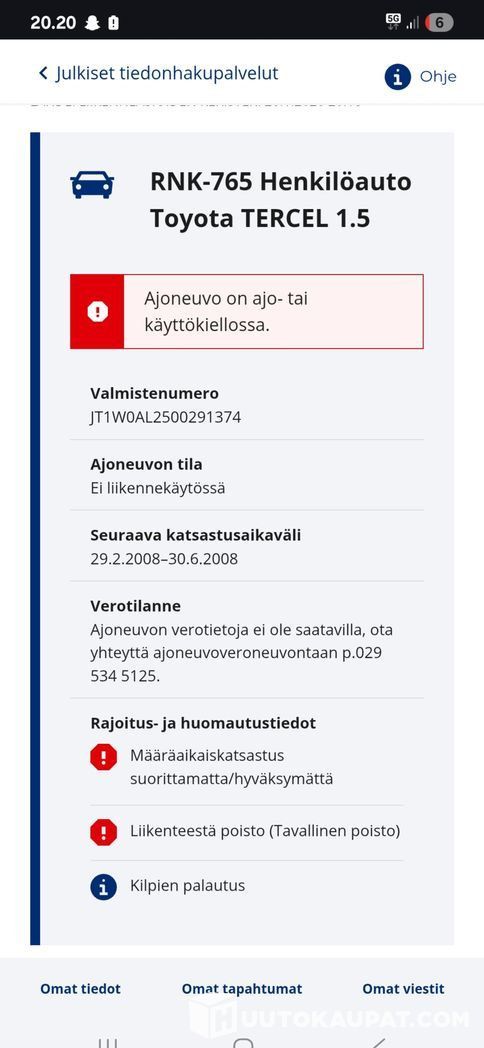 Varsinais-Suomen Autocenter Oy ilmoittaa, Huutokaupat.com myy