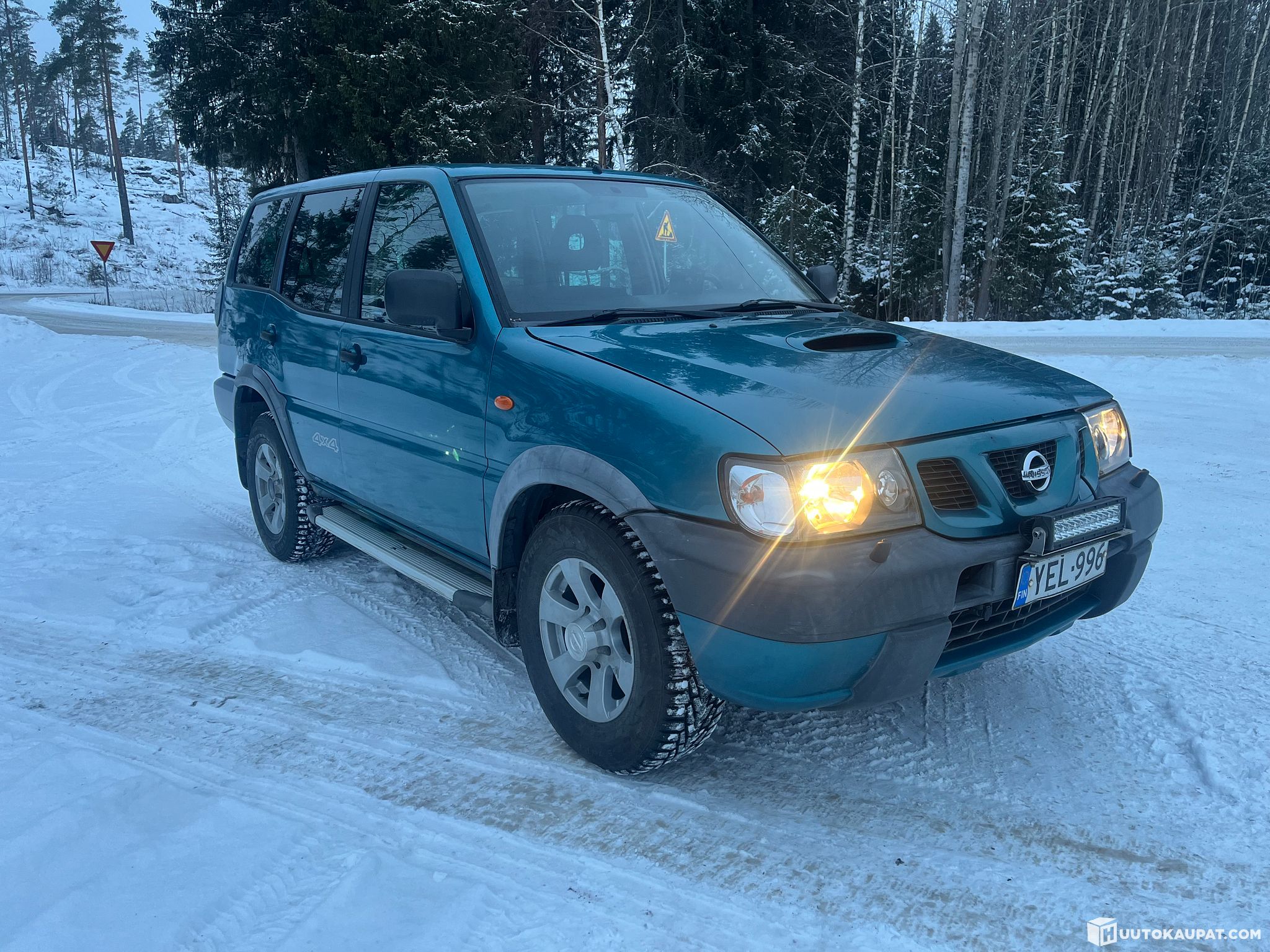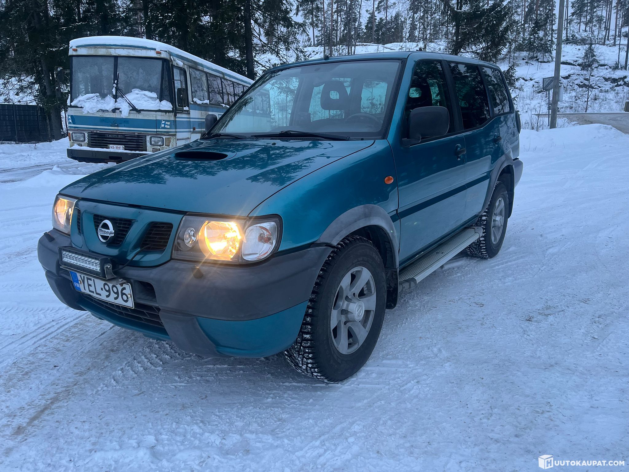 Lisävarusteena perutuskamera ja webasto. Webastoon ei tule virtoja, en ole tutkinut. JVC soitin ja kahdet hyvät renkaat, nastat alla mutta toiset myös M+S kuvista näkyy kummallakin vanteilla.