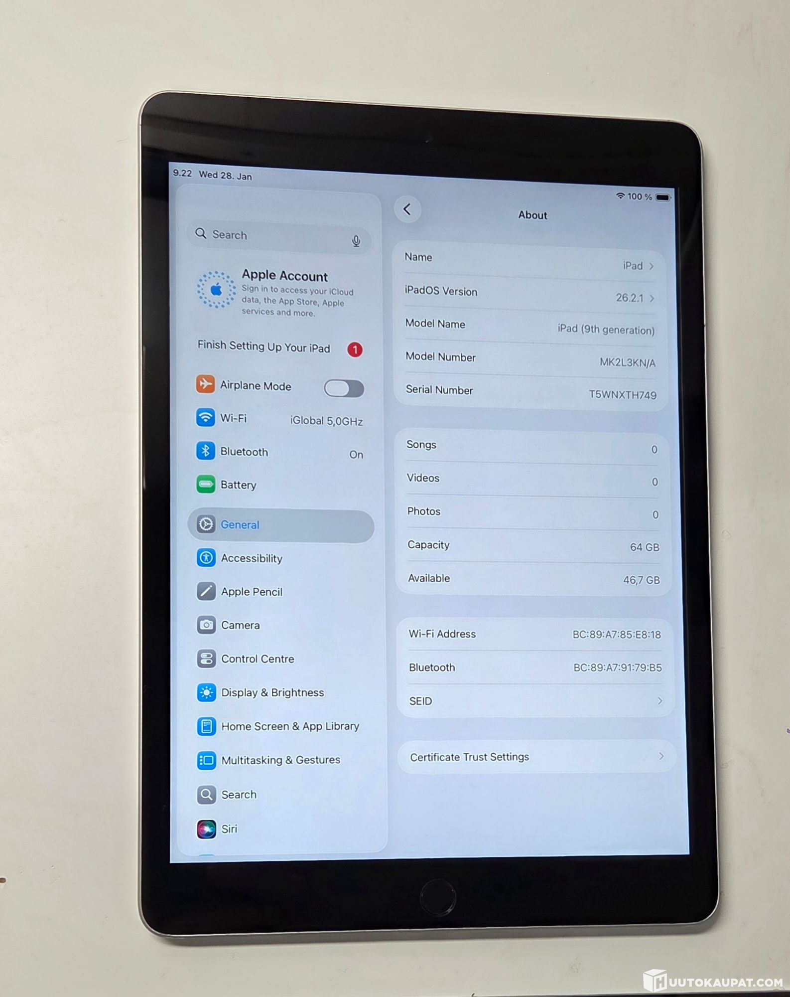 Käyttöjärjestelmä: iPadOS 26.2.1
