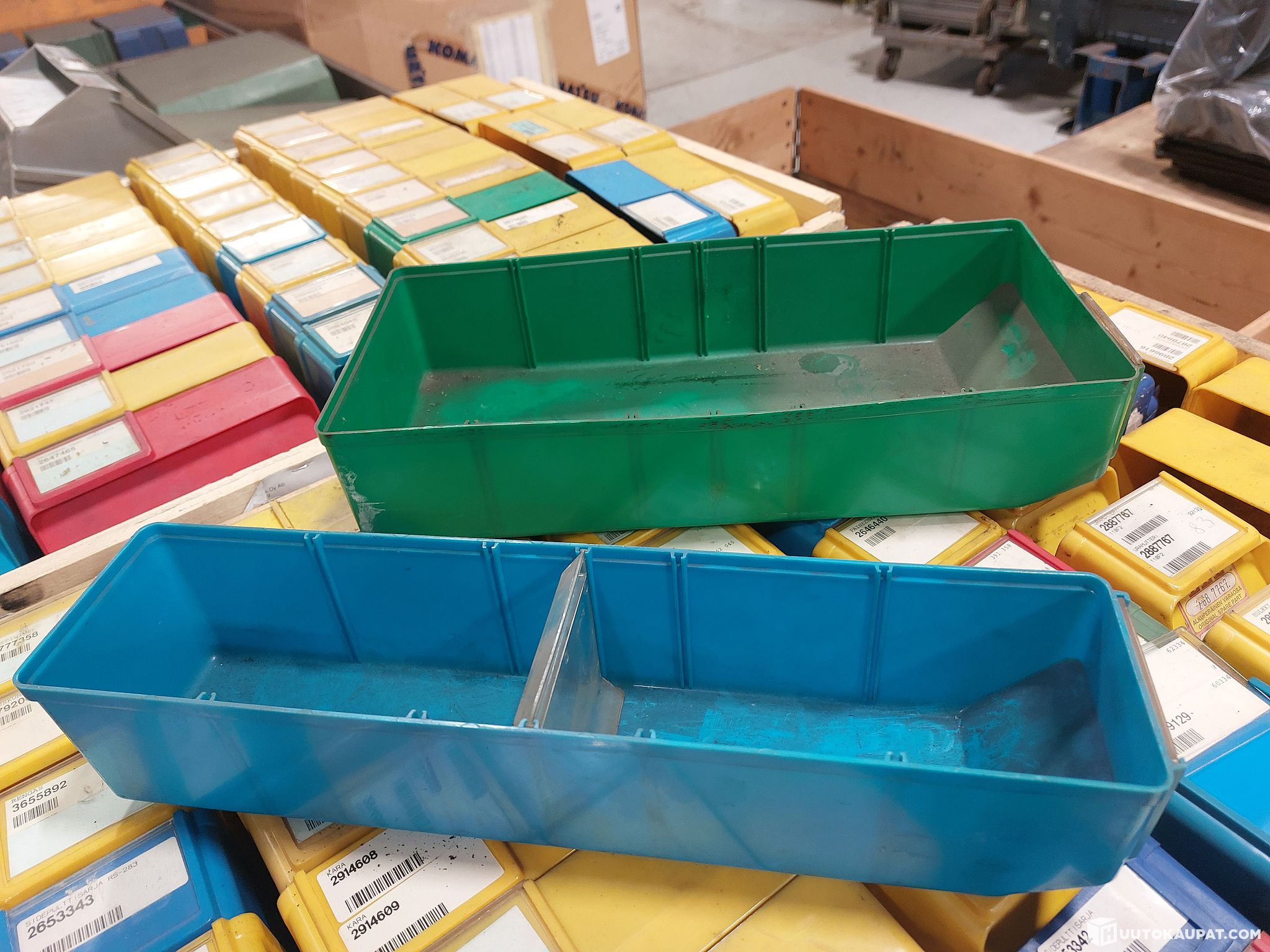 Laatikoita molemmissa lavoissa kaksi kerrosta.