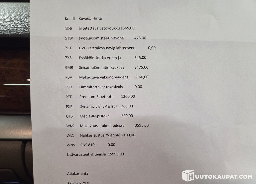 Tämän kohteen myyjä on Huutokaupat.com. Kulkuneuvos Oy antaa Huutokaupat.comin puolesta kohteesta lisätietoja ja vastaa kohteen luovutuksesta. Kohde tulee aina maksaa Huutokaupat.com-sivustolla olevien verkkomaksupainikkeiden kautta tai Huutokaupat.comin laskulla. Jos kohdetta ei makseta Huutokaupat.comille, Huutokaupat.com ei hyväksy mitään vastuuta kaupasta.