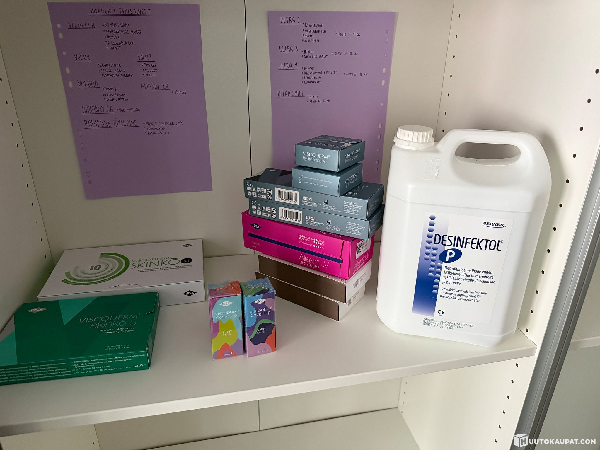 Kuvissa kuvatut tuotteet (kaikki tuotteet avaamattomia paitsi Viscoderm skinko e ja Viscoderm skinko Kit)