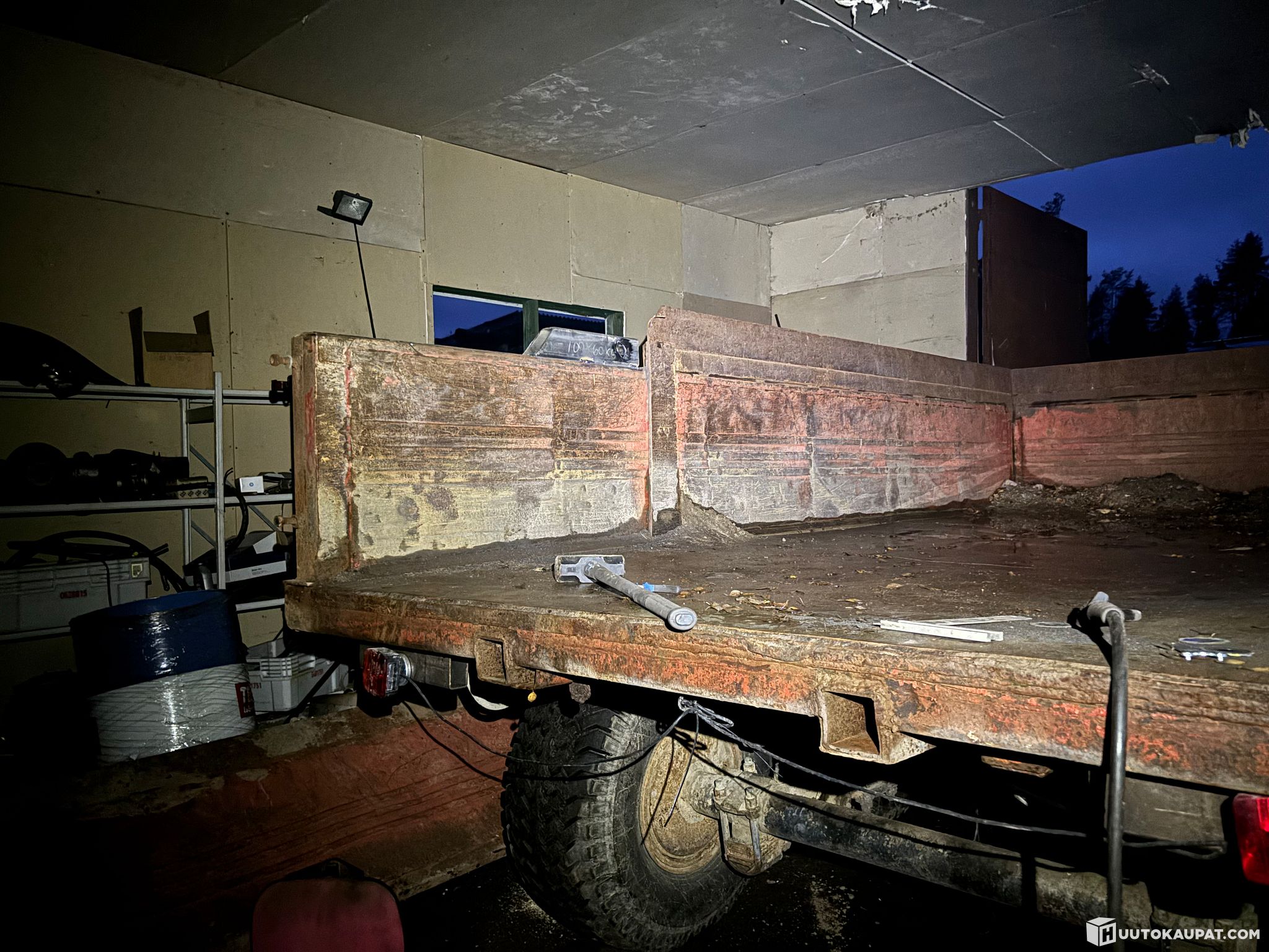 Hyvä kippikärry kippi ei vuoda, kohtalaiset renkaat vara vanne löytyy, letkut uusittu
