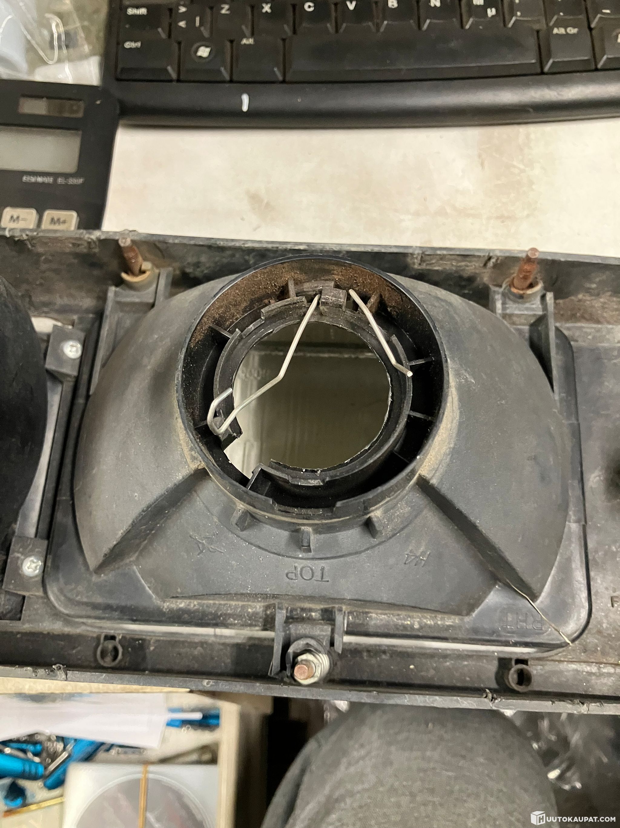 Etuvalon maski. Oikea valon kiinitys rikki. Maski kunossa ja sivuvalot
