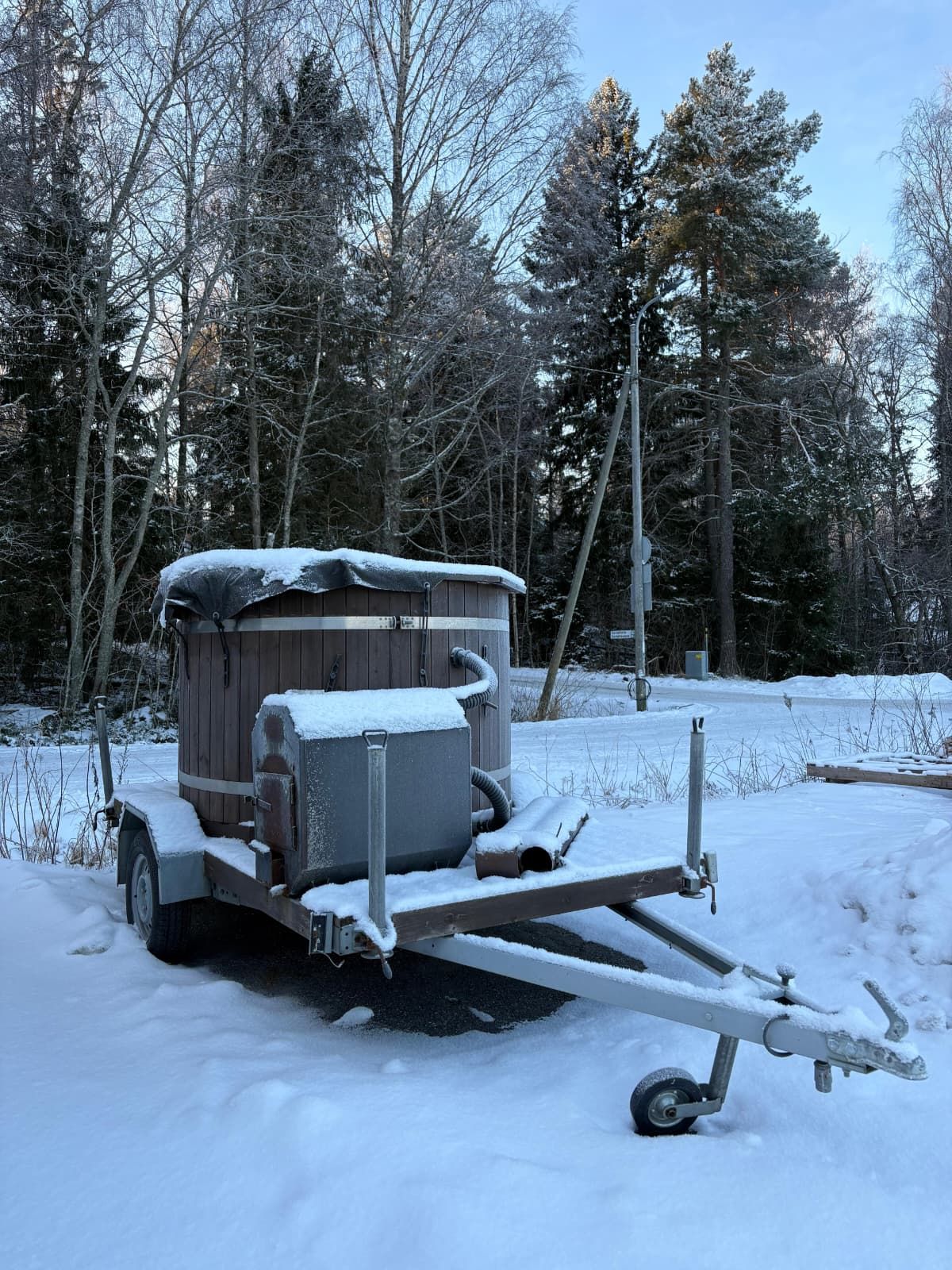 Ostaja vastaa paikan päällä matkailuvaunun kiinnittämisestä ja pois siirtämisestä. Matkailuvaunulta on tielle n.10m matka. Ostajan varauduttava tekemään (myyjä avustaa lumitöissä) lumitöitä saadakseen matkailuvaunun mukaansa. Vaunu suositeltavaa noutaa neliveto ajoneuvolla.