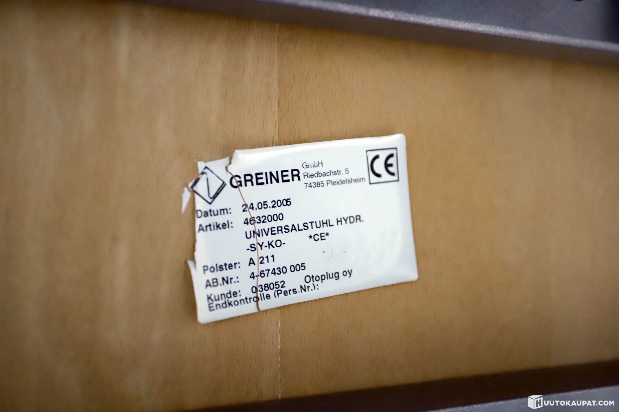 Hydraulinen Greiner-hoito-/tutkimustuoli.