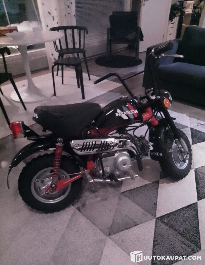 Tilaisuus asiaa ymmärtävälle ja näppärälle! Viimeistelyä vailla oleva, käyttöentisöity aito Honda Monkey 1984. Paljon uutta osaa mukaan ja pari moottoriakin. Toinen kiinalainen 72cm2 ja toinen Honda alkuperäinen varaosakone. Paikallaan aito Honda kone. Runkonumero löytyy, joten pitäisi saada kilpiin kun käyttää konttorilla.