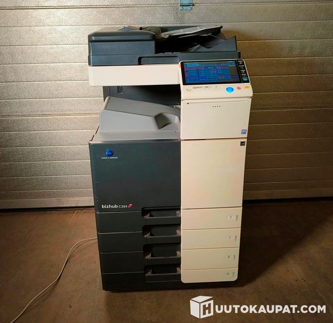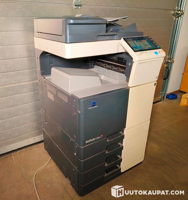 Konica Minolta bizhub C284 -monitoimilaite. Laite on toimistoluokan A3-väritulostin/kopiokone/skanneri kosketusnäytöllä ja automaattisella syöttölaitteella.