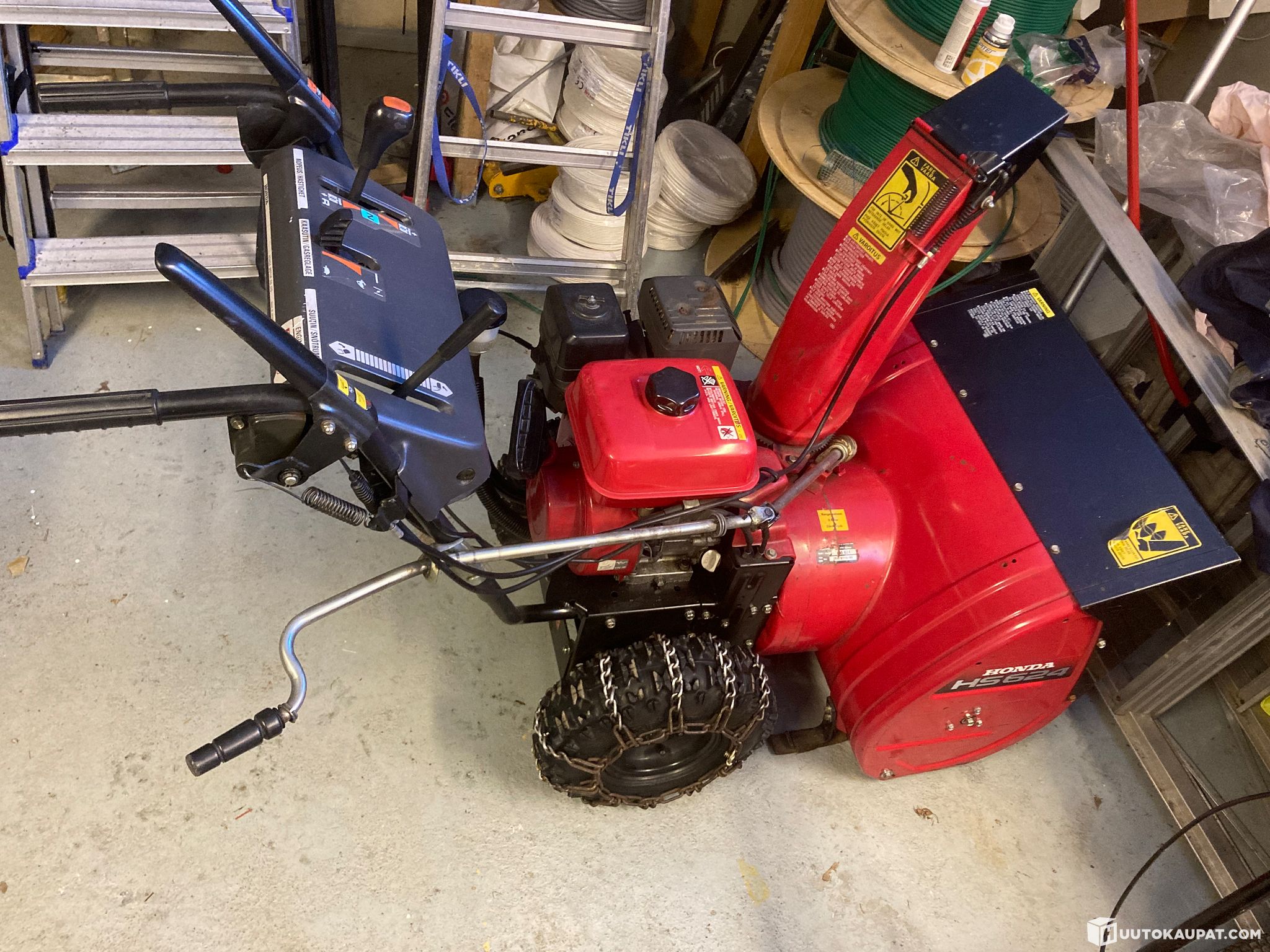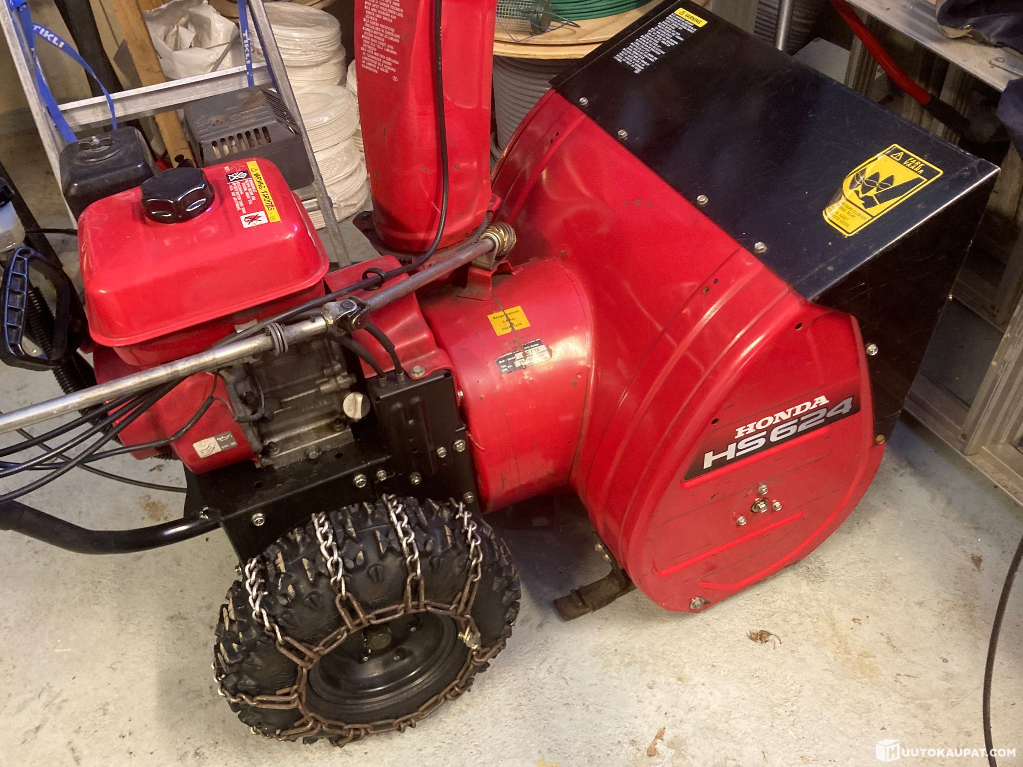 Nyt alkaa lumityöt sujua. Hondan HS624 malli lumiketjuilla! Parasta A ryhmää kotikäyttöön ja isommillekkin pihoille! Hyvässä kunnossa. Säilytetty lämpimissä sisätiloissa.