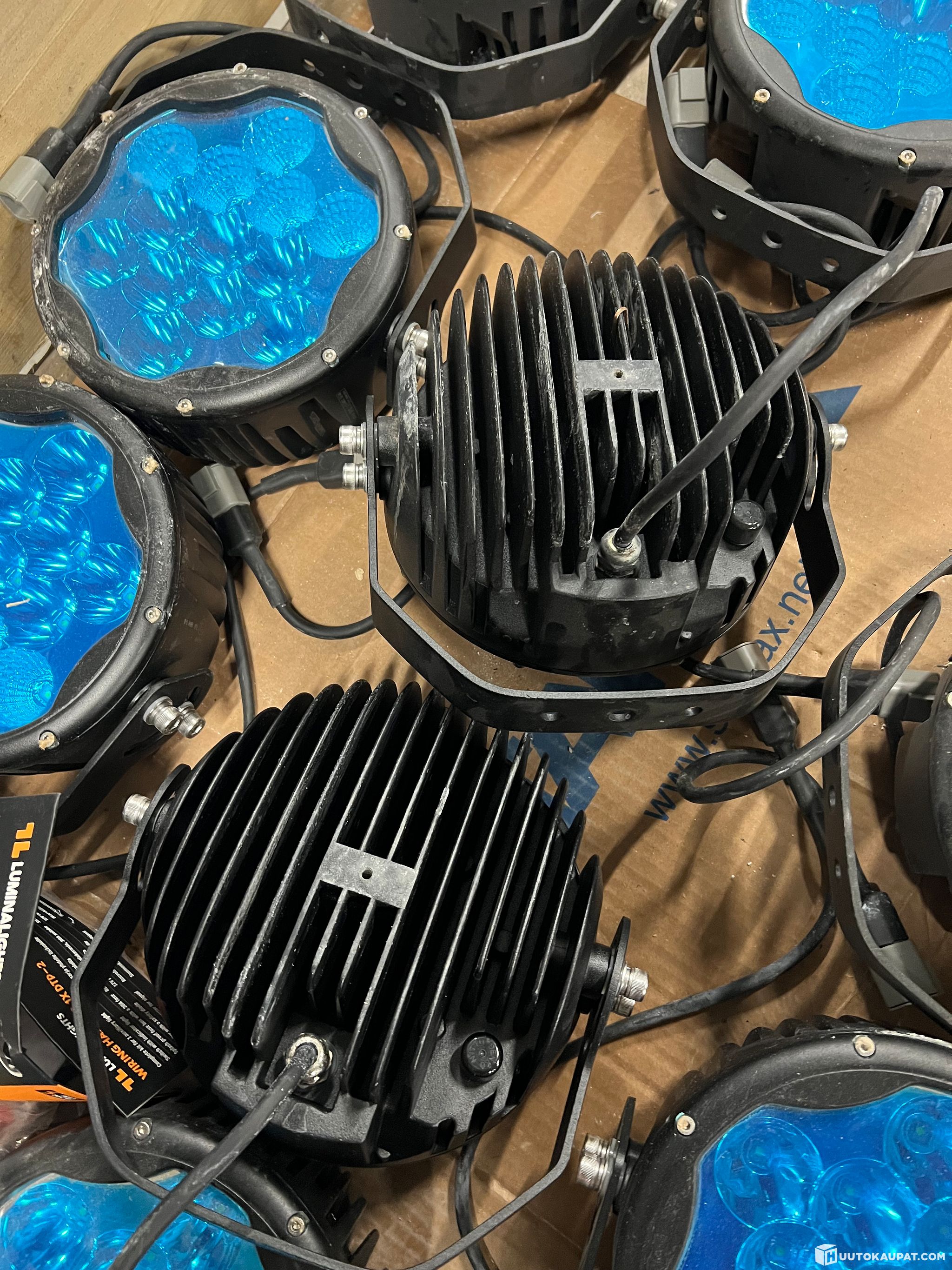 Kuvien mukainen erä lisävaloja tarvikkeineen. Valot ovat käyttämättömiä ja toimivia, mutta ovat olleet varastoituna kauan ja maalipinnoissa on vaurioita / metallipinnoissa hapettumia. Linsseissä vielä siniset suojamuovit paikoillaan. Näistä saa esim. hiekkapuhaltamalla ja maalaamalla siistit valot haluamassaan värissä.
