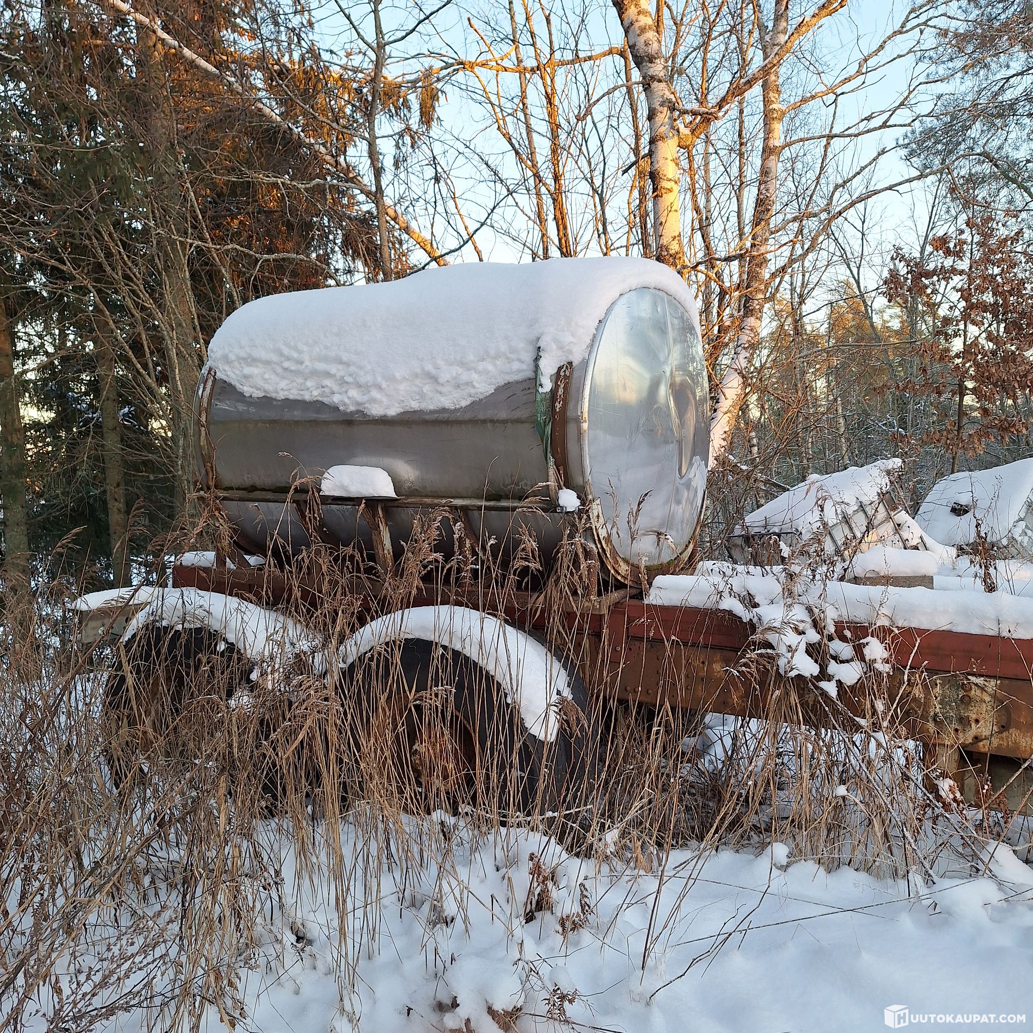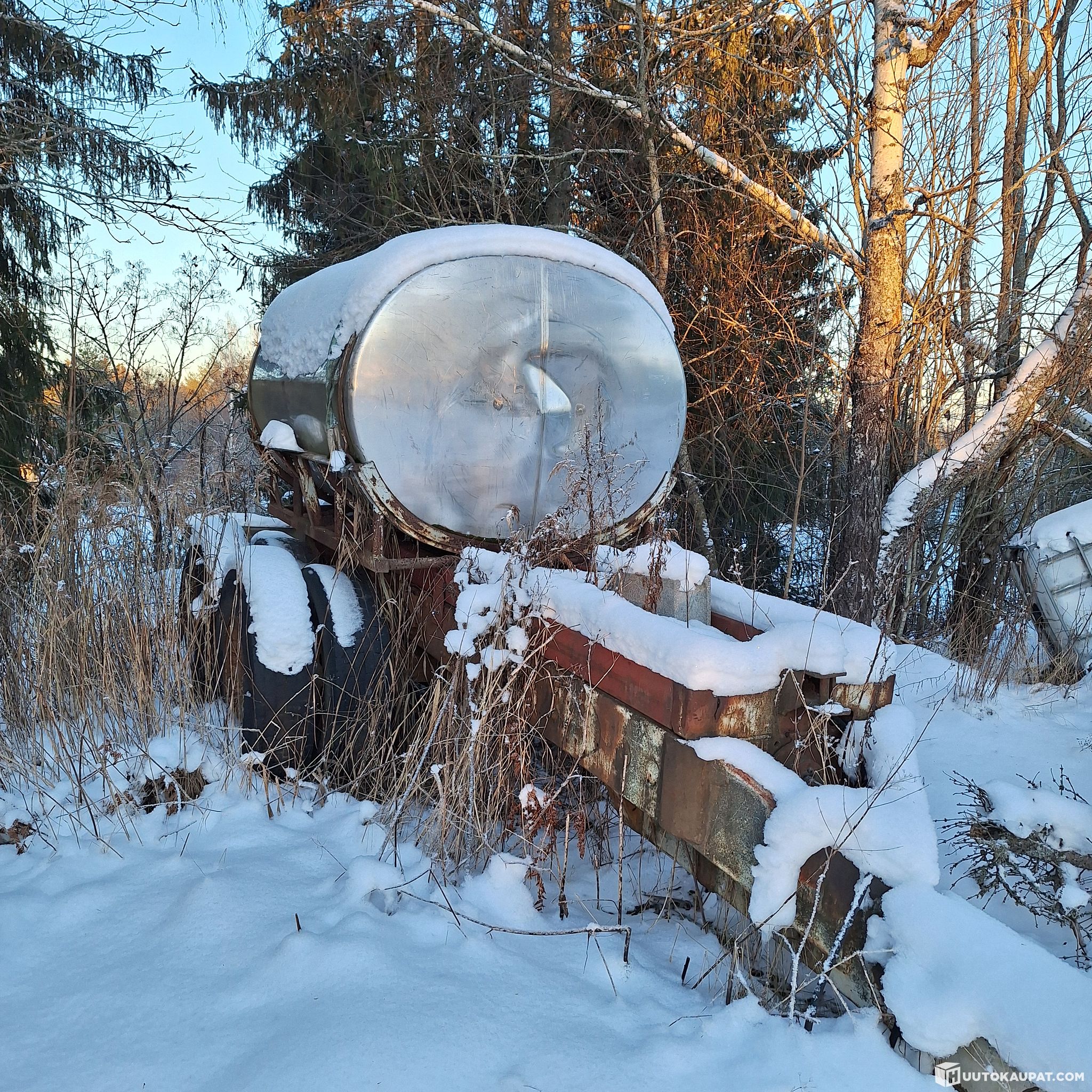 Vesi kärry noin 3 kuutio. Kuormaauton alusta. Missä on jarut. Projekti jäänyt kesken