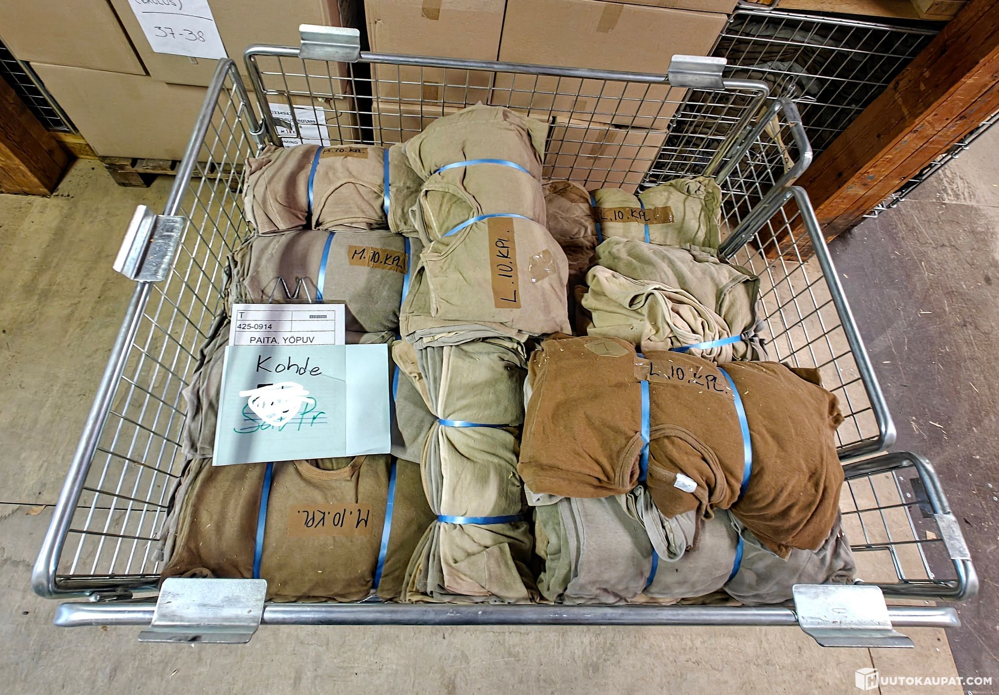 Kuvien mukainen vaatetusmateriaali. Kohde myydään romuna oheisten valokuvien perusteella.