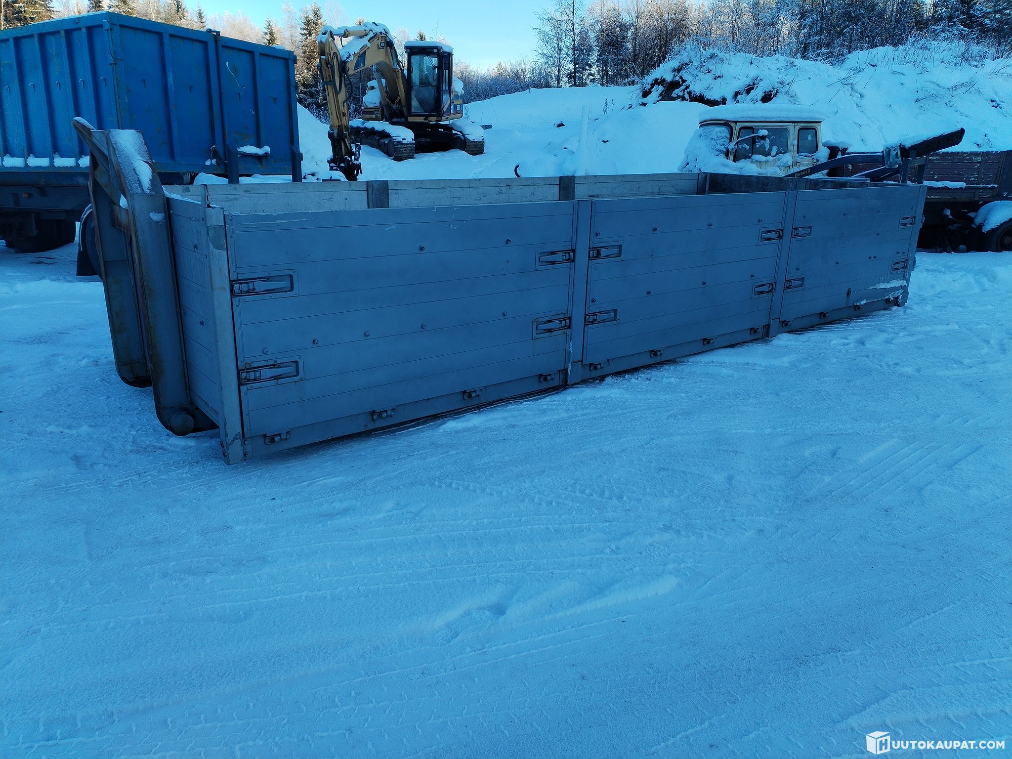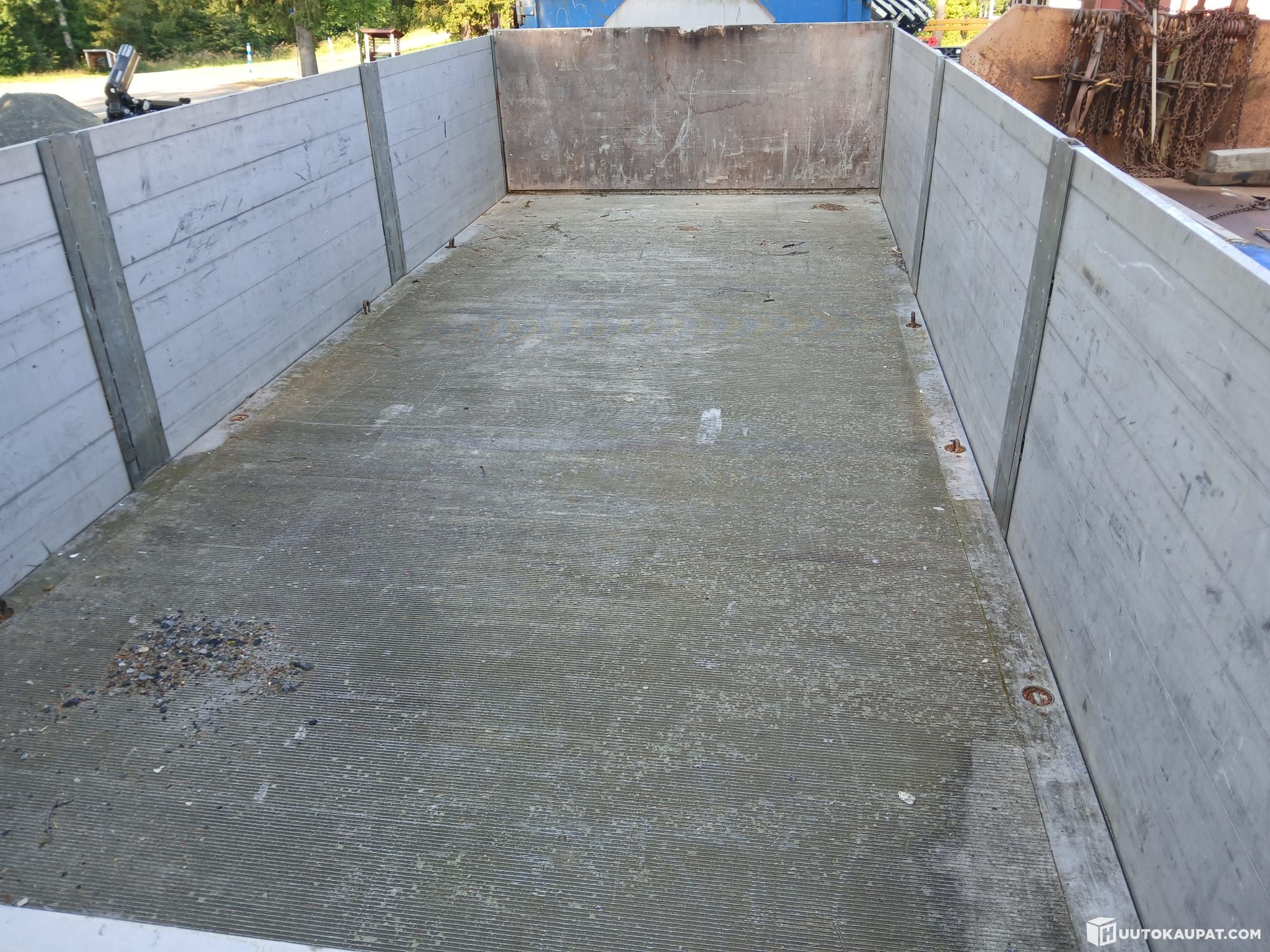 Siistikuntoinen alumiinilaidoilla ja alumiini pohjalla oleva rahtilava.