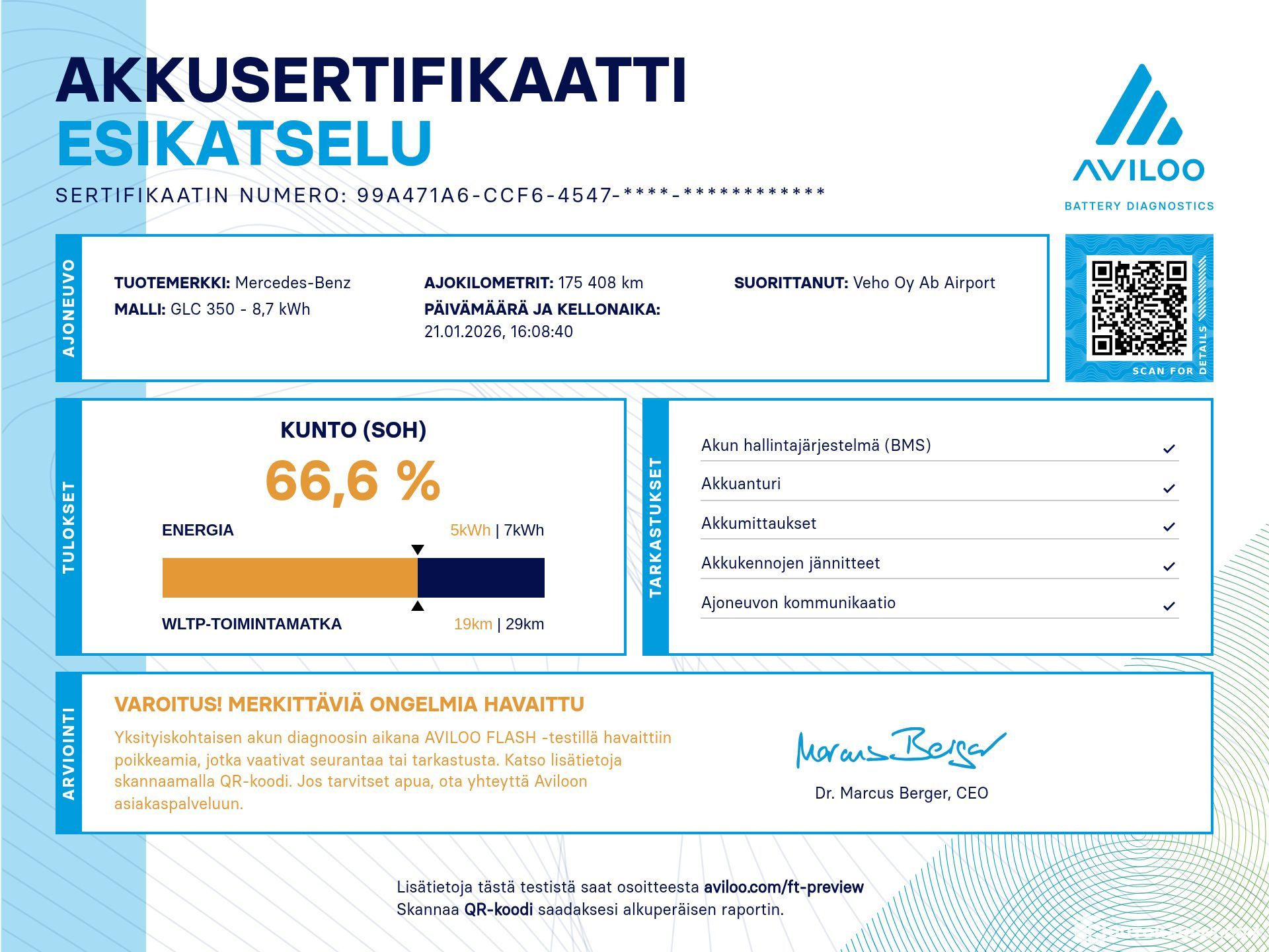 Huom! Todellinen toimintamatka riippuu suuresti ajoneuvon käyttötilanteesta ja voi näin ollen poiketa mainitusta.