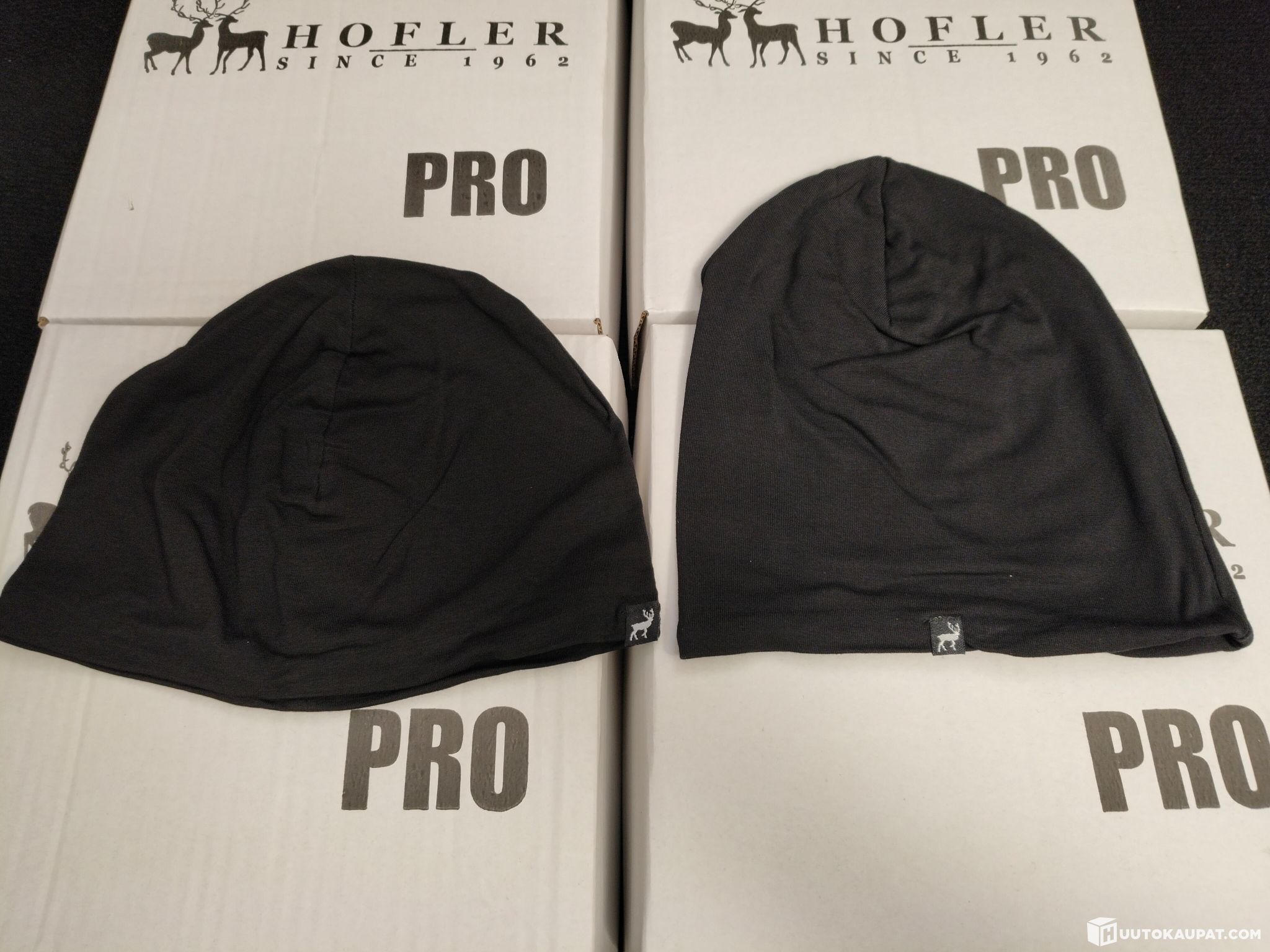 Musta trikoopipo, Tokka Design. Yhteensä 80 kpl. Kaksi eri mallia, matala ja korkea.