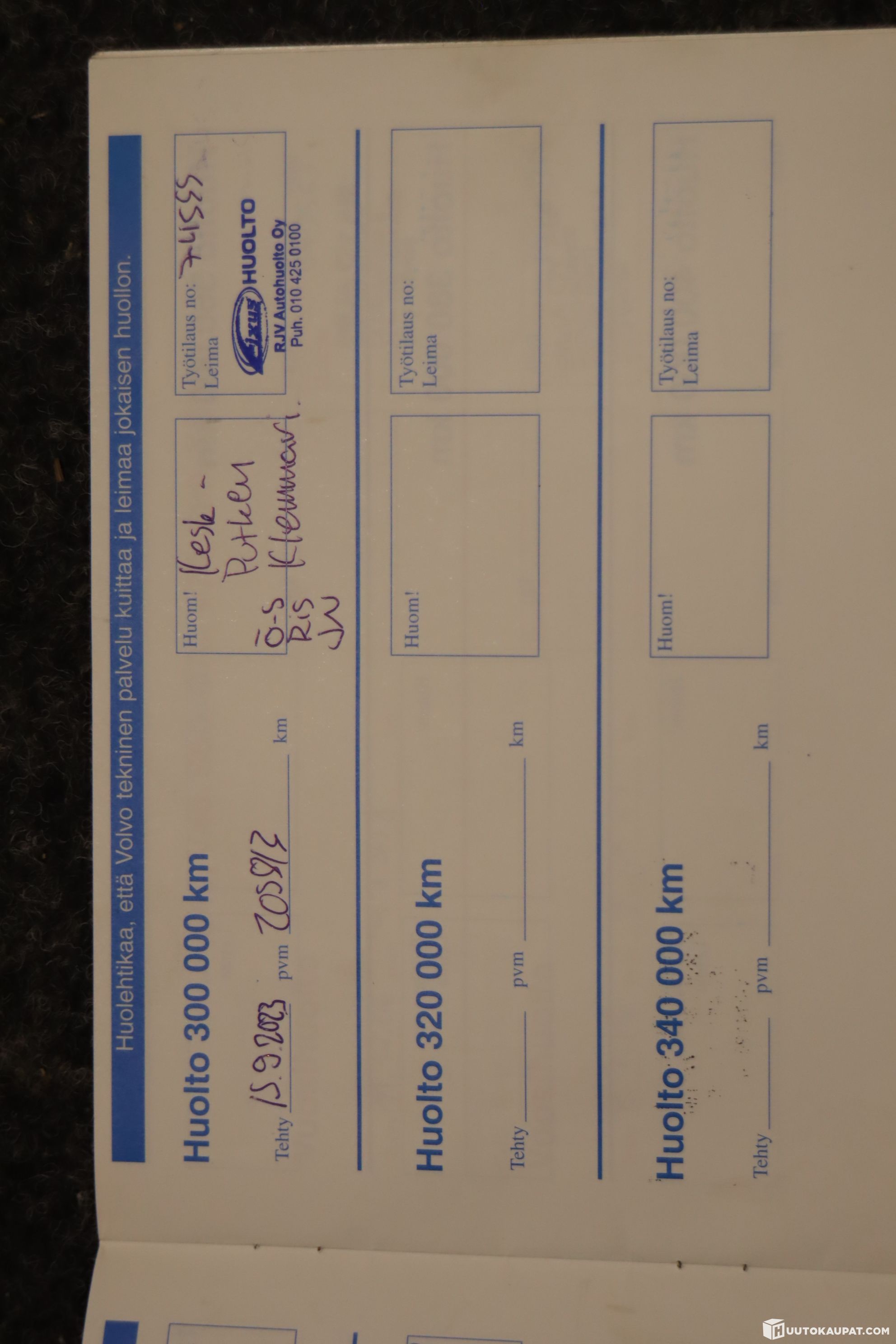 Huoltohistoria: paperinen