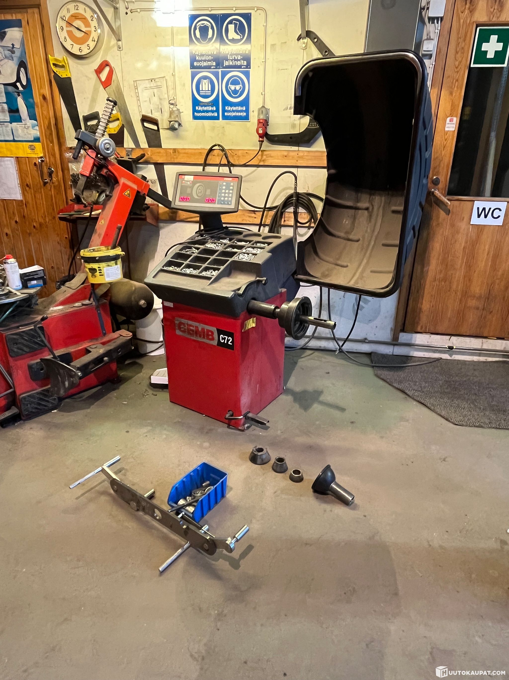 Muuten kone on toimiva ja siihen on lisävarusteet moottoripyörän renkaan tasapainotukseen.