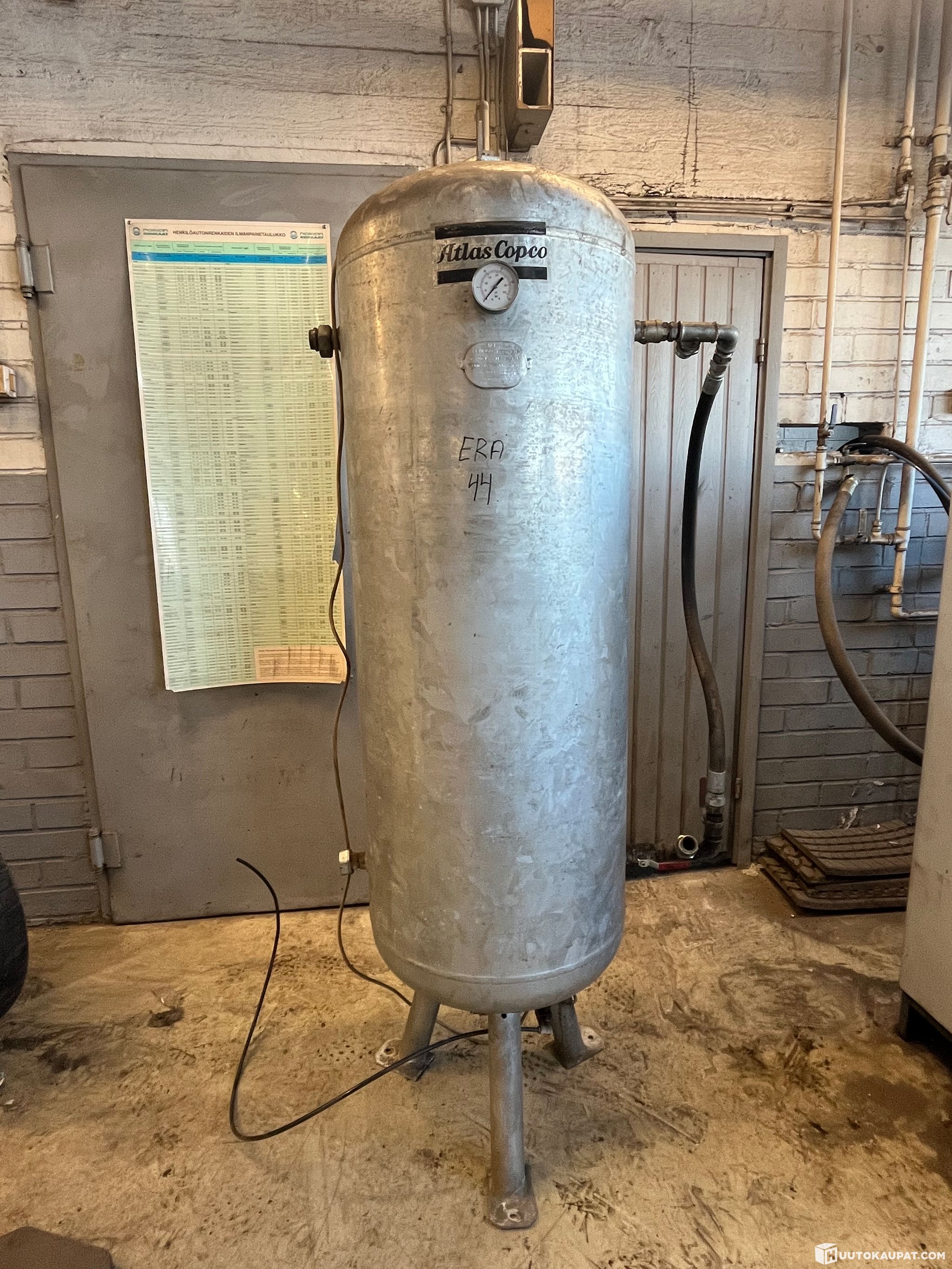 Paineilmasäiliö on ollut rengasliikkeen käytössä mutta jäi nyt ylimääräiseksi toiminnan loppuessa.
