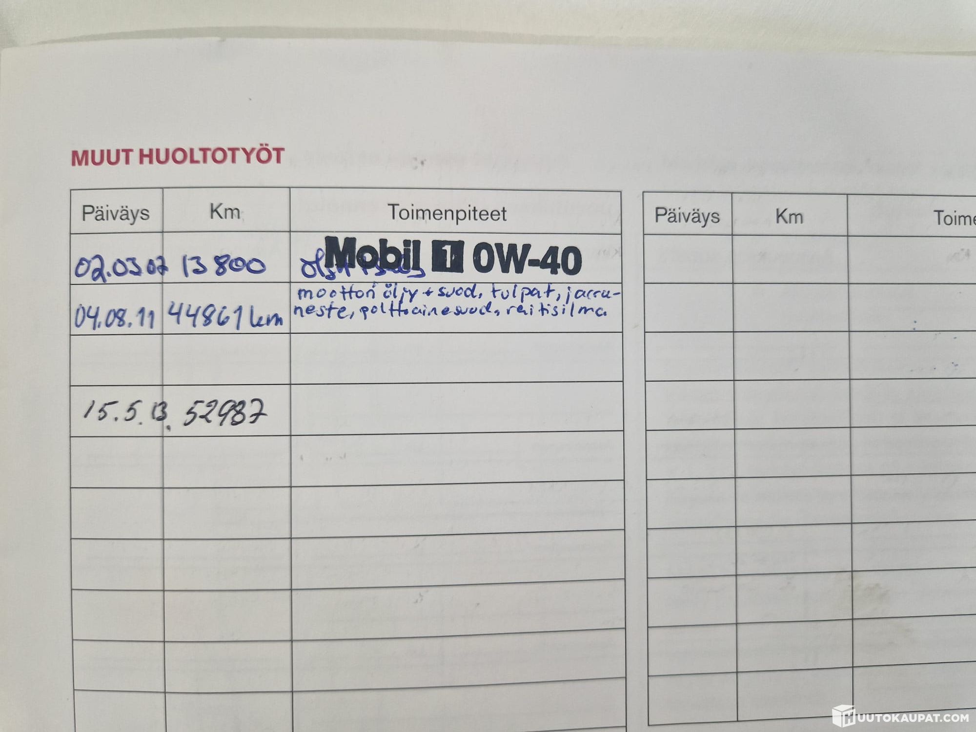 Hyvä huoltohistoria.