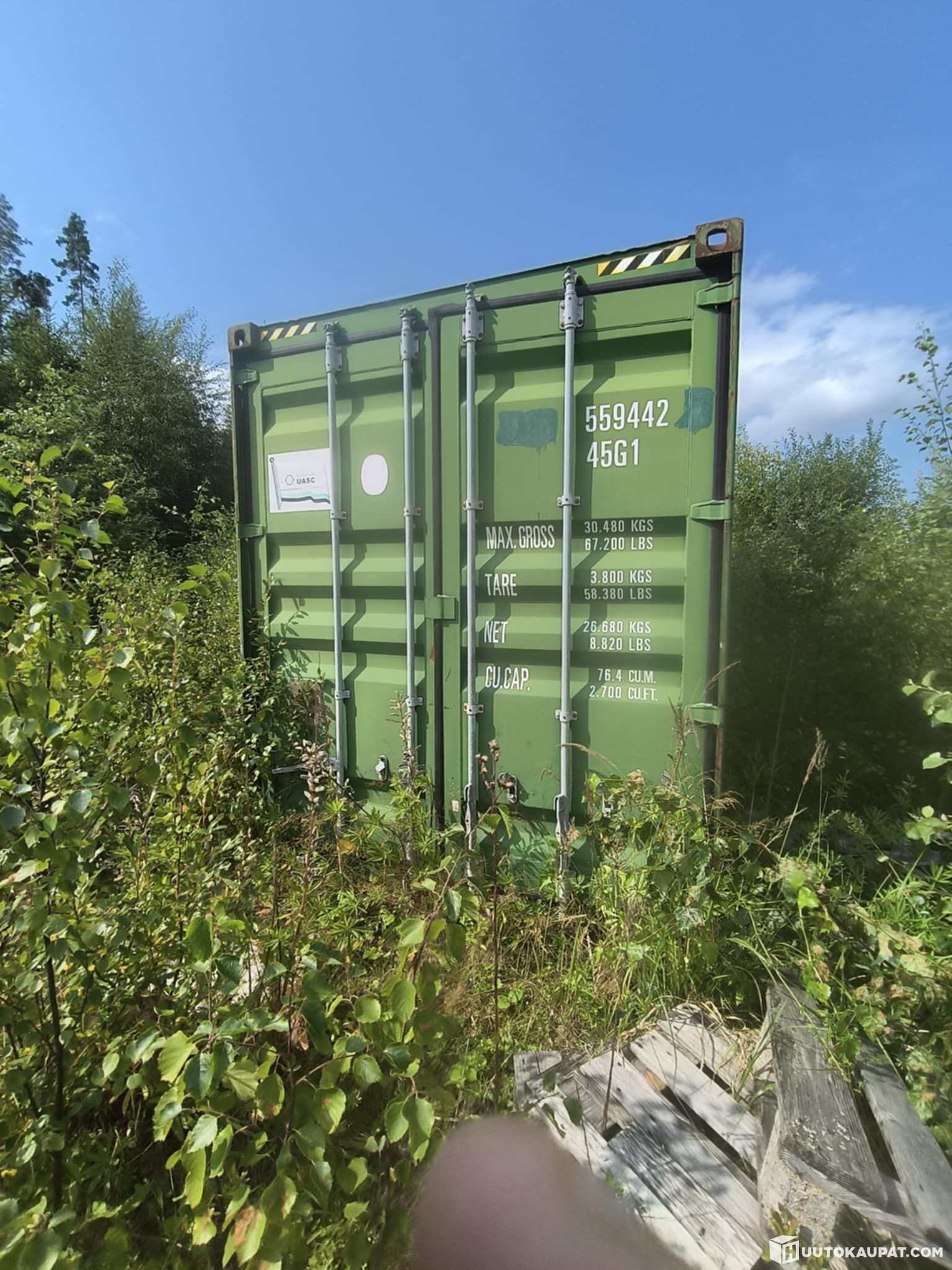Käytetystä merikontista tehty, ei mikään kukkanen, mutta ajaa asiansa oikein hyvin.