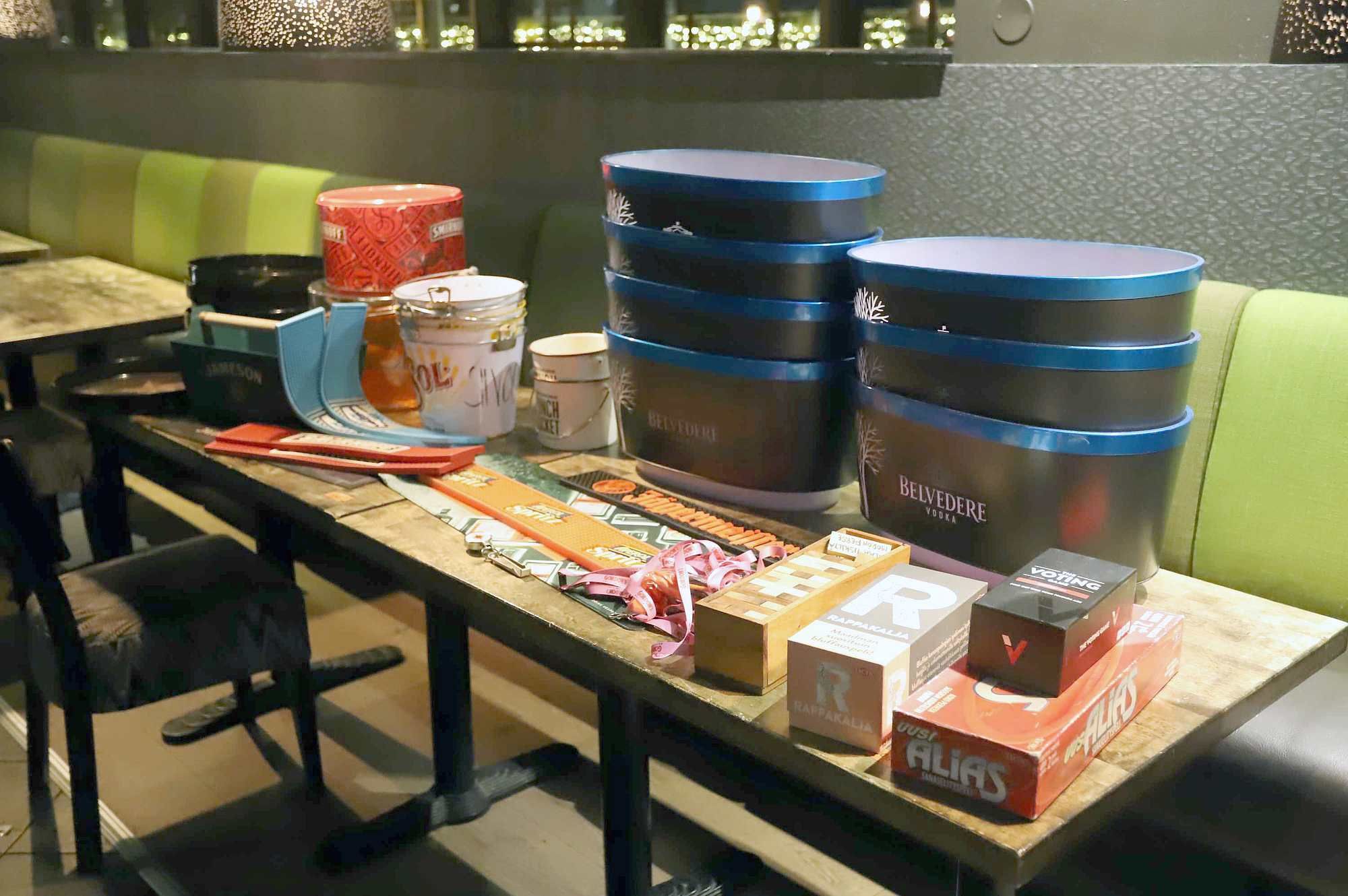 Baarin rekvisiittaa ja lautapelejä. RFL1/565, Tampere